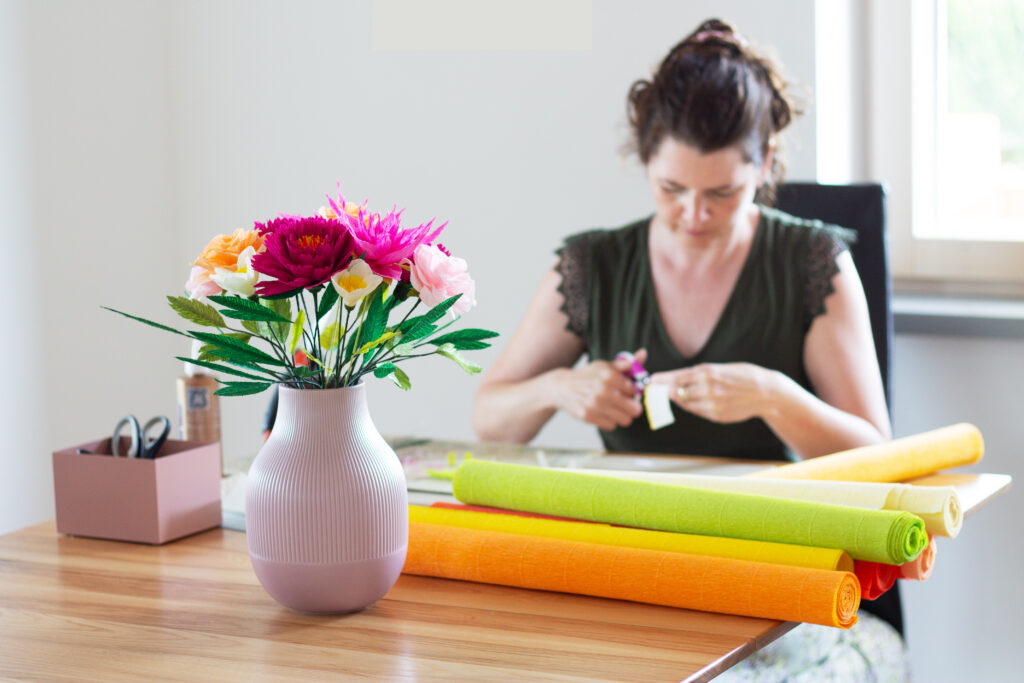Meine Blumen entstehen aus hochwertigem italienischem Krepppapier.